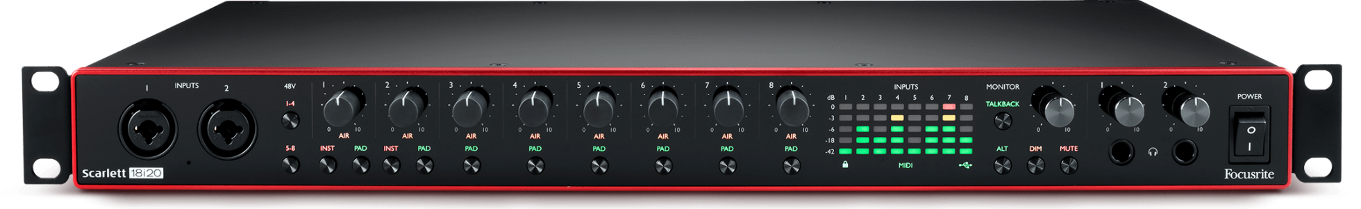 The quick guide below covers the basics of Scarlett 18i20 front panel.